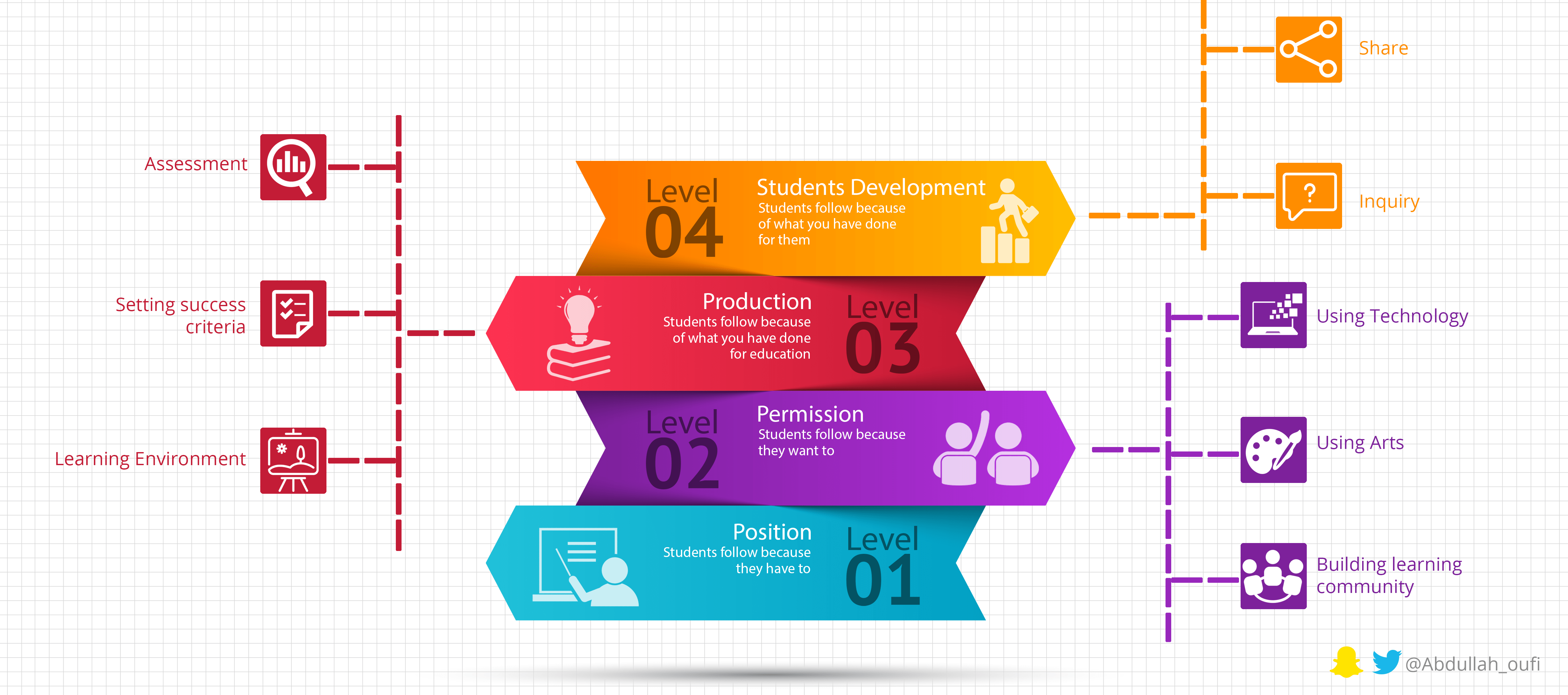 عند مناداة الطلاب بأسمائهم والاهتمام باستراتيجيات التعليم الحديثة التي تساعد على بناء مجتمع تعلّم يقدّر نقاط القوّة ويعمل على استثمارها ويكتشف مساحات التحسين ويطوّرها لدى المتعلّم، ينتقل المعلم للمستوى الثاني من القيادة والتي يصغي فيها الطلاب للمعلم ويوافقون على طريقته في قيادة الصف. تتغير استجابة الطالب في هذا المستوى من الحد الأدنى إلى الاستعداد لبذل جهد أكبر للتعلّم.