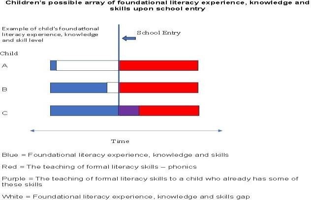 ما يحدث قبل دخول المدرسة يؤثر بشكل كبير على نجاح الطفل لاحقًا، حيث يدخل بعض الأطفال المدرسة مزوّدين بالمعرفة والمهارات اللازمة للانتقال بسلاسة إلى التعليم الرسمي، بينما لا يفعل آخرون ذلك. ويمكن رؤية أثر الفجوة بين امتلاك المتطلبات الأساسية اللازمة وعدم امتلاكها في الشكل 1 أدناه: